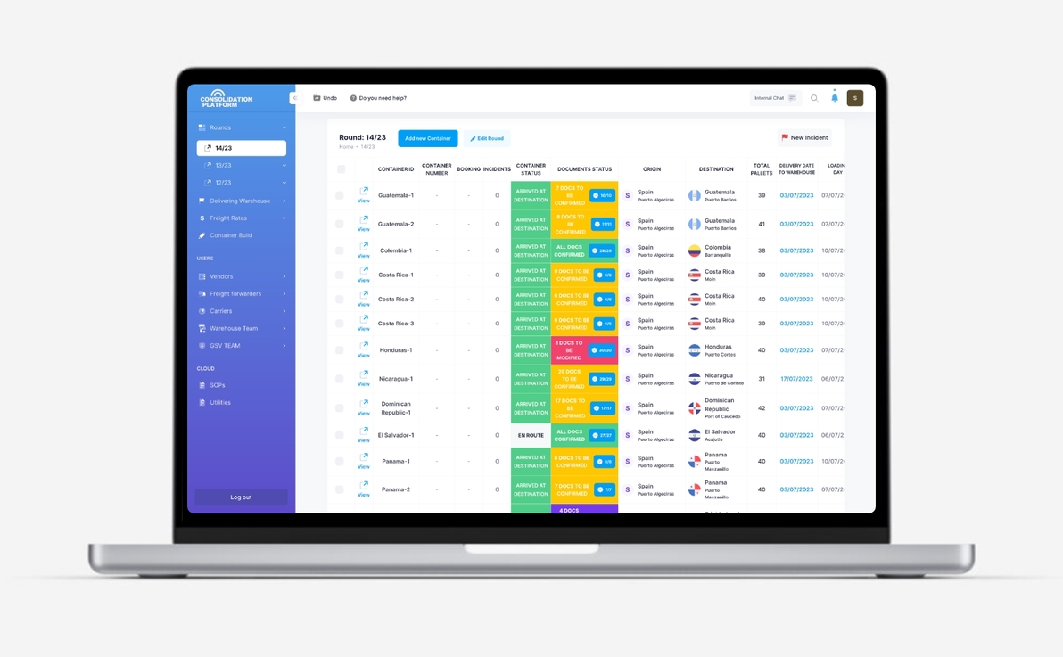 A platform in which all products, POs, documents and containers can be easily built, organized & tracked. Developed and operated by GSV,designed and developed in-house. Optimizes communication between vendors, freight forwarders & buying groups